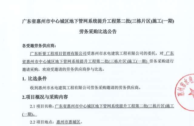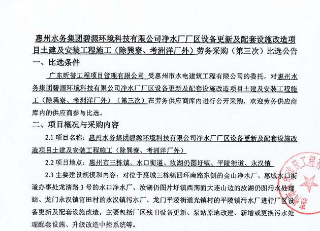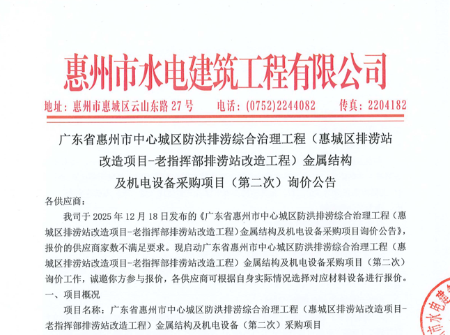 惠州市水電建筑工程有限公司成立于一九六四年四月,隸屬惠州市水務(wù)集團(tuán)有限公司,是一家國(guó)有綜合性施工企業(yè),主營(yíng)水利水電工程、房屋建筑、市政工程等施工業(yè)務(wù)。公司擁有水利水電工程施工總承包一級(jí)、建筑工程施工總承包一級(jí)、市政公用工程施工總承包一級(jí)、公路工程施工總承包三級(jí),公路路基、路面及建筑裝修裝飾專業(yè)承包二級(jí),環(huán)保工程、機(jī)電安裝、河湖整治、輸變電工程專業(yè)承包三級(jí)等經(jīng)營(yíng)資質(zhì)……